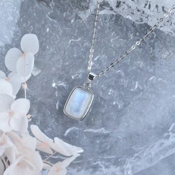 Natural Rainbow Moonstone Sterling Silver Pendant Necklace – Healing Energy Stone Jewelry for Women
