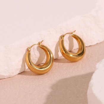 25mm Lightweight 18K Gold Plated Stainless Steel Hoop Earrings for Women