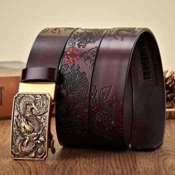 Men’s 3.5CM Leather Belt with Dragon Totem