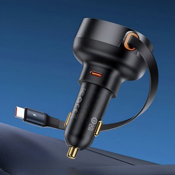 60W Fast Car Charger with Retractable Cable
